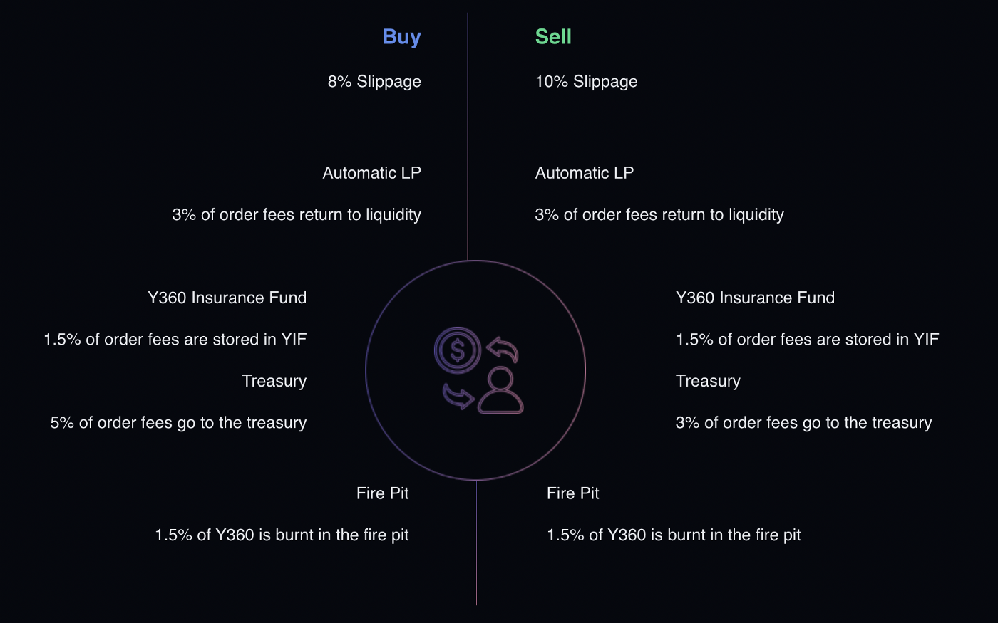 - Y360.io provides a safer token structure with the Yield 360 insurance fund. The Yield 360 Insurance Fund holds 1.5% of all trading fees, which helps to sustain and back the staking rewards by maintaining price stability and greatly reducing downside risk.